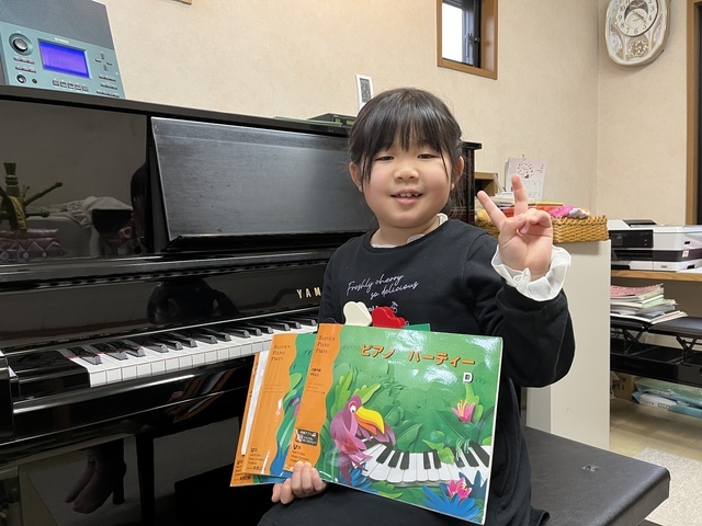 1年生のMちゃん、パーティDが終わりました。音符読みも5指音階もバッチリ合格。次からベーシックスです。頑張っていこう!